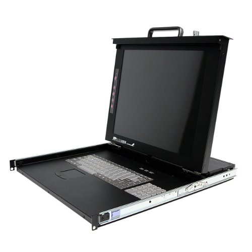 This 1U Folding Rackmount LCD Console offers a high quality KVM solution, featuring a 17in LCD display, full-size (106 key) keyboard and mouse touchpad, as well as an 8-port KVM module.